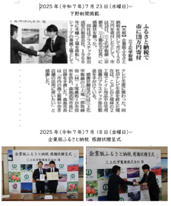 矢板市より企業版ふるさと納税の感謝状が授与されました。